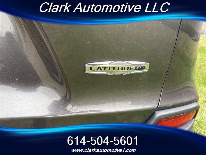 The exterior showcases Jeep's signature styling, with a bold front grille and sleek lines that enhance its modern appeal. The Latitude Plus trim comes equipped with 17-inch aluminum wheels, roof rails for added utility, and available LED daytime running lights that improve visibility and safety.